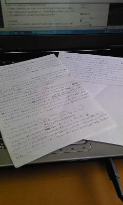 週末にまた実家のほうへ帰っていた彩斗ですどうも、本当は朝帰ってきて今日の午後から学校に行く予定だったんですがめんどく・・眠たかったのでやっぱ止めにしました、あれ言い換えた意味あったのかなこれ。えー、カラフルに関してはちょっとネタ切れを起こしかけていたのですが保護者組堂々参戦決定により書いても書いても書きたいところにたどり着かないという、目の前ににんじんぶら下げられた馬車馬のようにただひたすら走り続け、ゼミやプログレスや就活などいろいろやるべきこともあったんですが まァとりあえず置いといて みたいなノリでとりあえず走り続け、ふと気がついたら90本目を突破しました。・・いやーお前ほんとなにやってんの、っていう感じもするんですがなんせ書いてて楽しくてしゃーないんで、ずっとこうやってられたらいいのにとぼんやり思いながら眠りにつき、そして朝を迎えています・・ふぅ、まさにニート万歳!状態ですが管理人は見栄っ張りなのでどこかしらにどうにかして就職したいです、ええ。・・でも二時間で小論二本書かされた昨日は 「・・終わった」 と思いました、・・人生設計って、なに?← フェリーの中はありえないくらいヒマなので絶対小説を持ち込むんですが、思ったよりスルスルと読めてしまい、じゃあ余った時間どうしようかなぁと考えたとき、カラフルの続き書くかと思える程度には頭沸いてます。前々からここらへんちゃんと書けるかなー収拾つけられるかなーと不安に思っていたところをどうにか無事上りきったので後は勢いで滑り降りればいいんですが、やはり登った山がでかいと勢いもすごいっていうかキャッホォオオ!みたいな(どんなだ)。いや書き手がキャッホォオオ!しすぎてフリーダムすぎる保護者組に好き勝手されても困るんでセーブ気味でがんばりますが、今のところその頑張りは目に見えていません。私は携帯に文章を打ち込むという習慣がないので、PC以外にはノートの隅に走り書きするとか要らない紙の裏にメモメモするとか・・自分でもアホやってんなぁと思いながらも結構書けましたえへ。まちがえてファイルに挟んだまま友達に貸したりできない門外不出の恐るべき紙くずになるわけですがねええ、社会的に抹殺されかねませんからねええ。